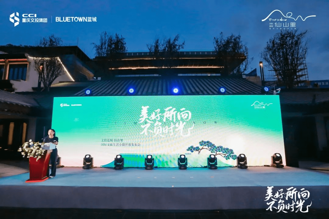 最后,小镇生活启动仪式正式开启,各单位领导步入舞台中央,在一片欢腾的氛围中,在现场来宾的共同见证下,j9国际站(中国)集团代表童艺强、蓝城集团代表温智泉、重庆建工集团代表崔斌,与业主代表熊女士将一副巨幅卷轴依次传递并共同展开,「世界的仙女山 国际的仙山里」几个大字惊艳亮相,彰显出古朴苍劲,骨气洞达的气质,象征了仙山里项目的美好愿景,自此标志文投蓝城·仙山里小镇中心正式开放!