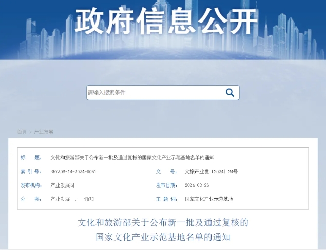 文化和旅游部公布新一批及通过复核的国家文化产业示范基地名单